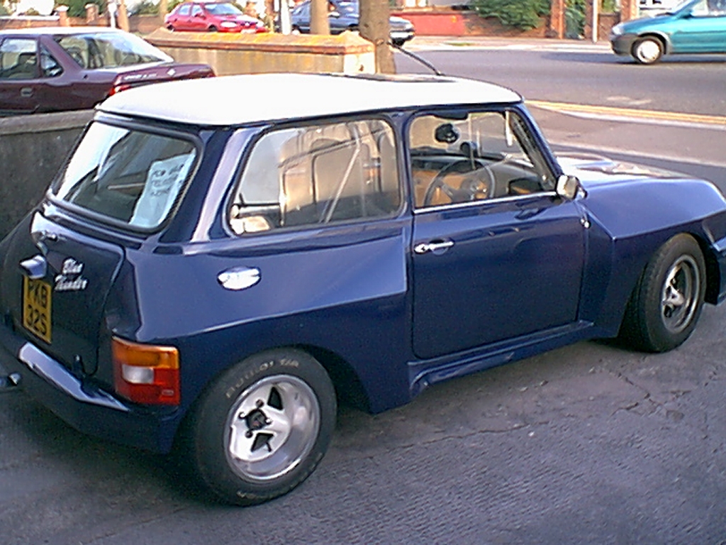 Imagine the situation, you’re at the lights, waiting for green, and this big arched monster pulls up next to you. “No problem” you think slyly to yourself… surely this is at the best a 1400cc conversion? couldn’t be that bad to beat…. the lights go amber, your hit the gas.. but wait, what is that race bread engine note? can’t be the Mini? must be mistaken… oh shit why are the back wheels spinning? (and now straight cut gearbox whine!). Why am I being tossed into the weeds? Have I just entered a parallel universe, where all mini’s are rear drive monster power beasts?…. no you just had a close encounter with Blue Thunder… what a serious Mini?? oh yes indeedy…