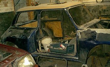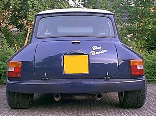 Blue Thunder is its name, and unlike any other mini, it has humongous thunderous roar when its fired up. This is because, also unlike any other mini (that we know of), its powered by a 2.1 litre Ford lump. Once a Pinto, now who knows what the engine is!!!